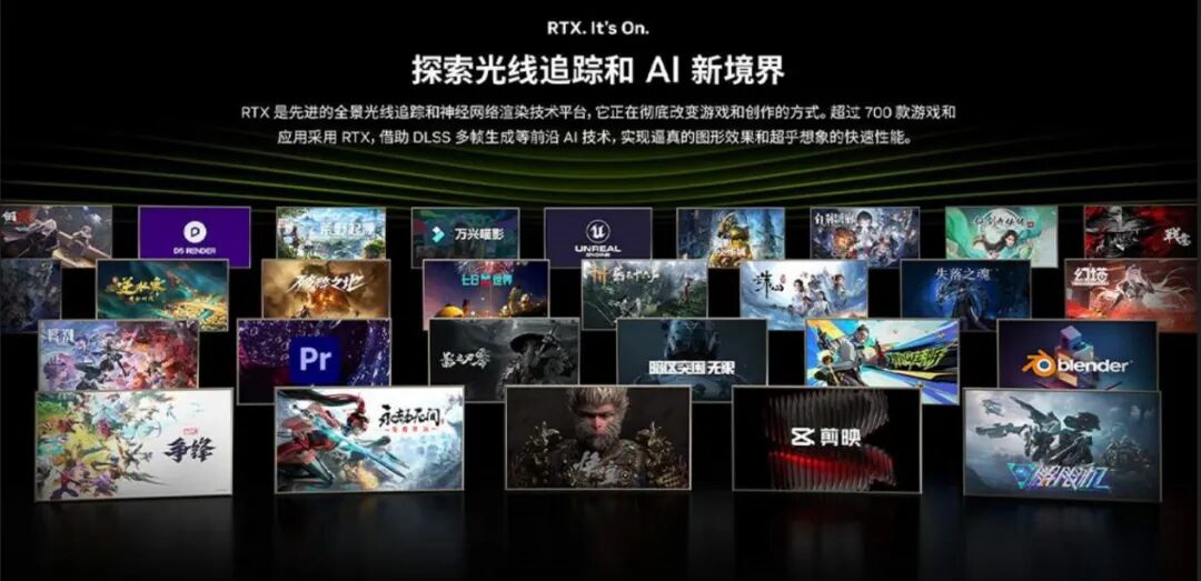 GeForce RTX 50 系列 GPU 由 NVIDIA Blackwell 提供支持,是专为游戏玩家和创作者打造的致胜平台。RTX 50 系列搭载第五代 Tensor Core和第四代 RT Core,为游戏玩家和创作者提供强劲的AI性能,可提供全新体验和更高级别的图形保真度。借助 NVIDIA DLSS 4 提高性能,以前所未有的速度生成图像,并使用 NVIDIA Studio 释放创造力。此外,还可以访问 NVIDIA NIM 微服务 - 最先进的AI模型,让发烧友和开发者可以在支持NIM的RTX AI PC上构建具有最佳性能的AI助手、AI智能体和工作流。