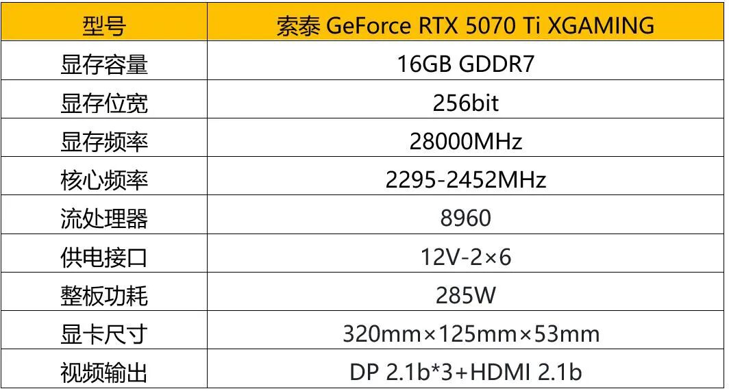 索泰GeForce RTX 5070 Ti XGAMING额定功耗为285W,采用新版12V-2x6 16P供电接口,功耗比5080更低,但散热却毫不含糊。新升级冰芯2.0散热系统,对流穿透设计,整卡尺寸为320mm×125mm×53mm,散热鳍片加高加长,全面采用高导热镀镍复合热管。