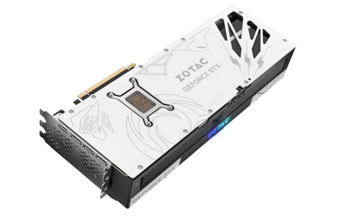 背板采用高强度合金材料一体铸形而成,其上有白色机甲羽翼装饰,不仅强化了产品的独特个性,更使其在视觉上呈现出一种灵动且优雅的姿态。索泰GeForce RTX 50系天启将机甲的力量感与优雅的气质完美融合,给人一种既震撼又赏心悦目的感觉。