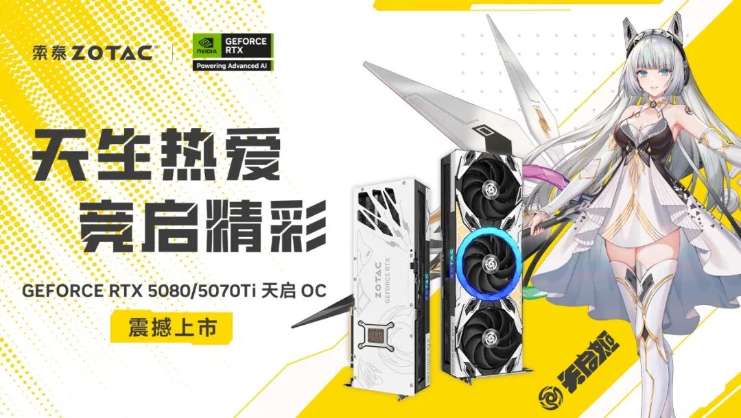 索泰 GeForce RTX 5080 16GB 天启 OC、索泰 GeForce RTX 5070 Ti 16GB 天启 OC显卡正式上市开售,索泰全新天启,与你一起追逐心中那一份永远不息的热爱!