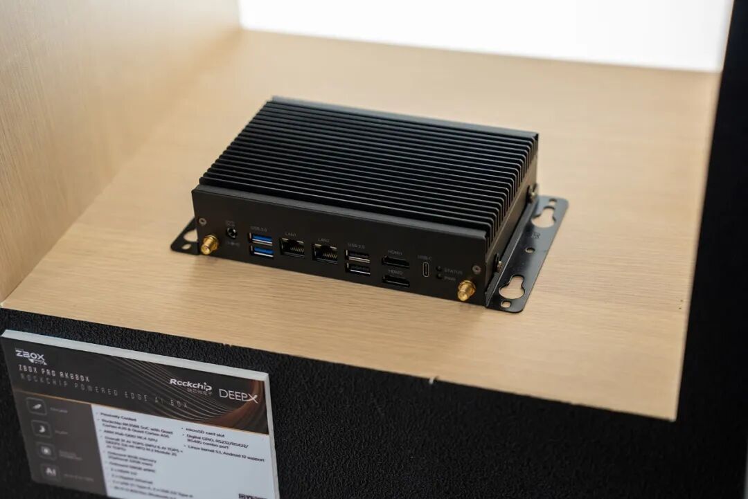 索泰展示了 ZBOX PRO系列嵌入式系统,包括基于 ARM 的 NVIDIA Jetson SUPER、Rockchip SoC 驱动的 AI PC,以及搭载DeepX/Axelera AI加速器的新一代 ZBOX PRO AI BOX 迷你 PC,算力能有效满足工业边缘计算需求。