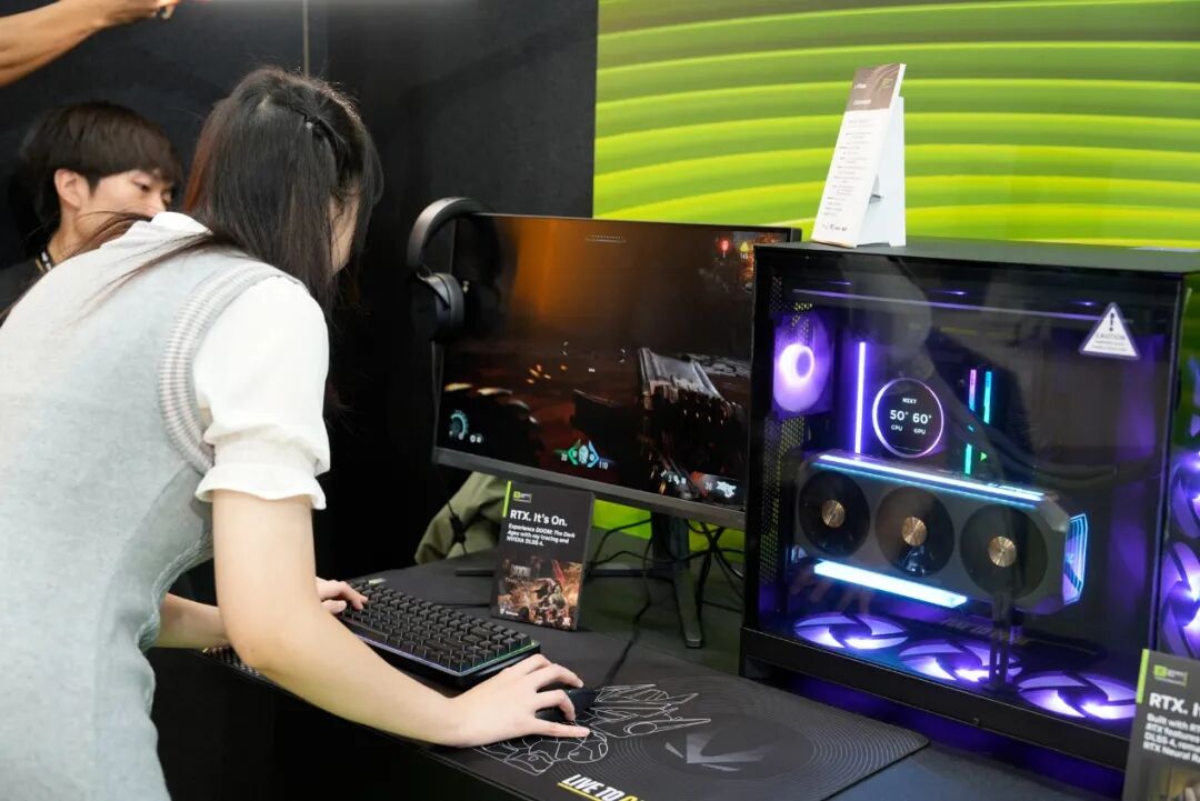 展会期间,索泰设置了 NVIDIA技术体验区,参观者可亲身体验RTX显卡在游戏、创意工作流中的图形渲染与AI加速效果,并通过互动环节深入了解本地AI部署的潜力。