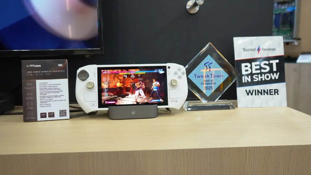 继去年推出首代掌机产品ZONE后,索泰在本次展会中展出了升级版ZONE White原型机,一举囊括多个奖项。搭载AMD最新 Ryzen AI 9 HX 370 Processor APU,配备Radeon 890M核显,提供24GB/32GB LPDDR5X内存和1TB PCIe 4.0 SSD存储。其7英寸AMOLED屏幕支持1080p分辨率、120Hz刷新率及HDR显示,配合基于Manjaro Linux优化的操作系统,既保障了游戏流畅性,又为开发者提供了开源生态支持。