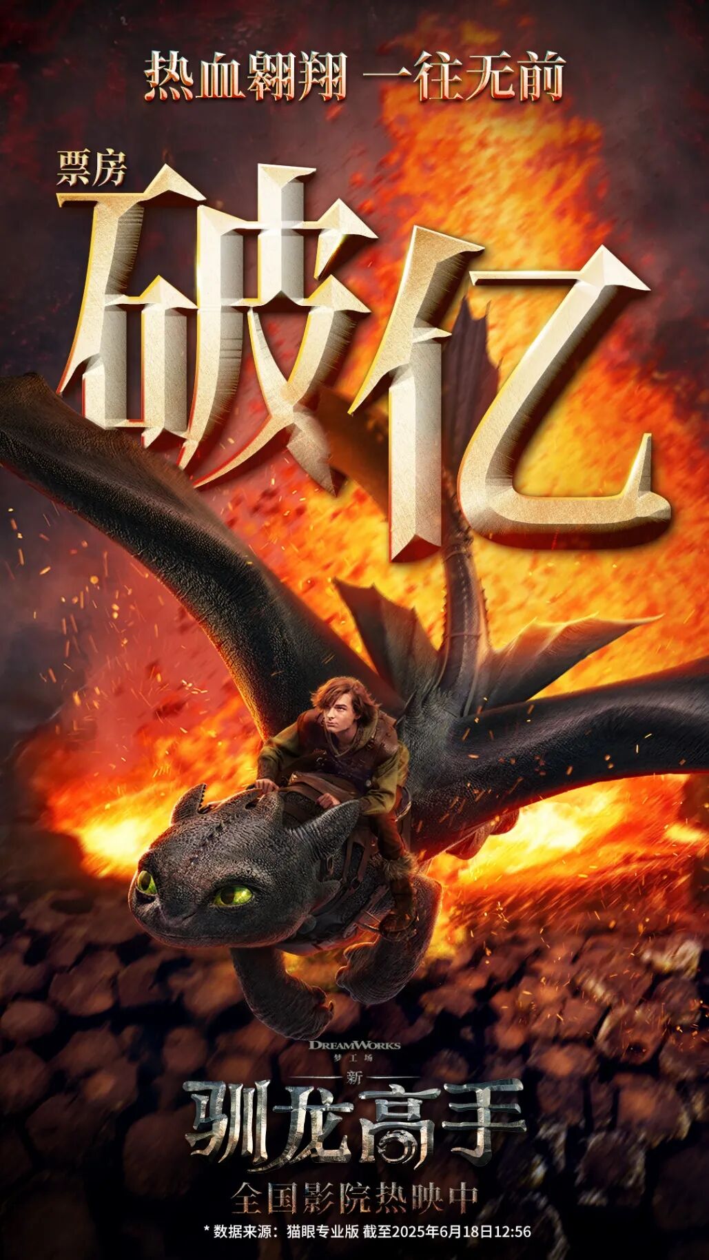 2025年6月19日 —— 就在真人奇幻巨制《新·驯龙高手》全球上映首周,由好莱坞梦工场和环球影业共同推出的真人电影《新·驯龙高手》13日在中美同步上映,迎来票房和口碑双丰收。全球首周末劲收1.97亿美元,登顶首周末全球票房冠军。国内票房也不容小觑,据猫眼专业版统计,截至6月18日,该片票房已超过1亿元人民币,连续多日领跑单日票房。