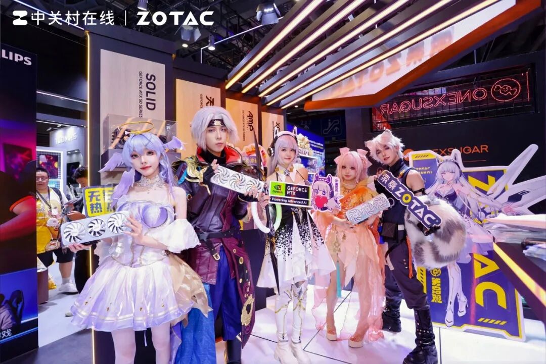 索泰天启系列专属IP形象——天启姬,焕新出击!天启姬新形象,结合了显卡外观特色元素与整体设计美感,将天启显卡的机甲美学完美诠释。展会现场,索泰品牌IP形象天启姬以真人COS形式惊艳亮相,与RTX 5080天启OC显卡同屏出现,成为玩家争相合影的焦点。