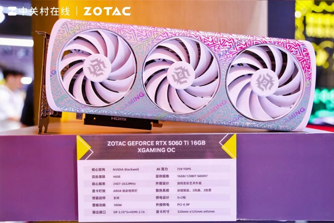 涂鸦艺术RTX 5060 Ti XGAMING OC:大胆撞色设计搭配表面珠光感工艺,使用线条和几何图案创作出充满活力的视觉效果,个性十足。