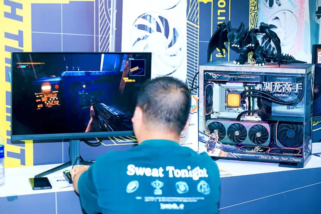 索泰现场展出了4台不同风格的高性能电竞游戏主机,每台机器前都挤满了热情的观众,形成展会期间持续的高人气焦点。