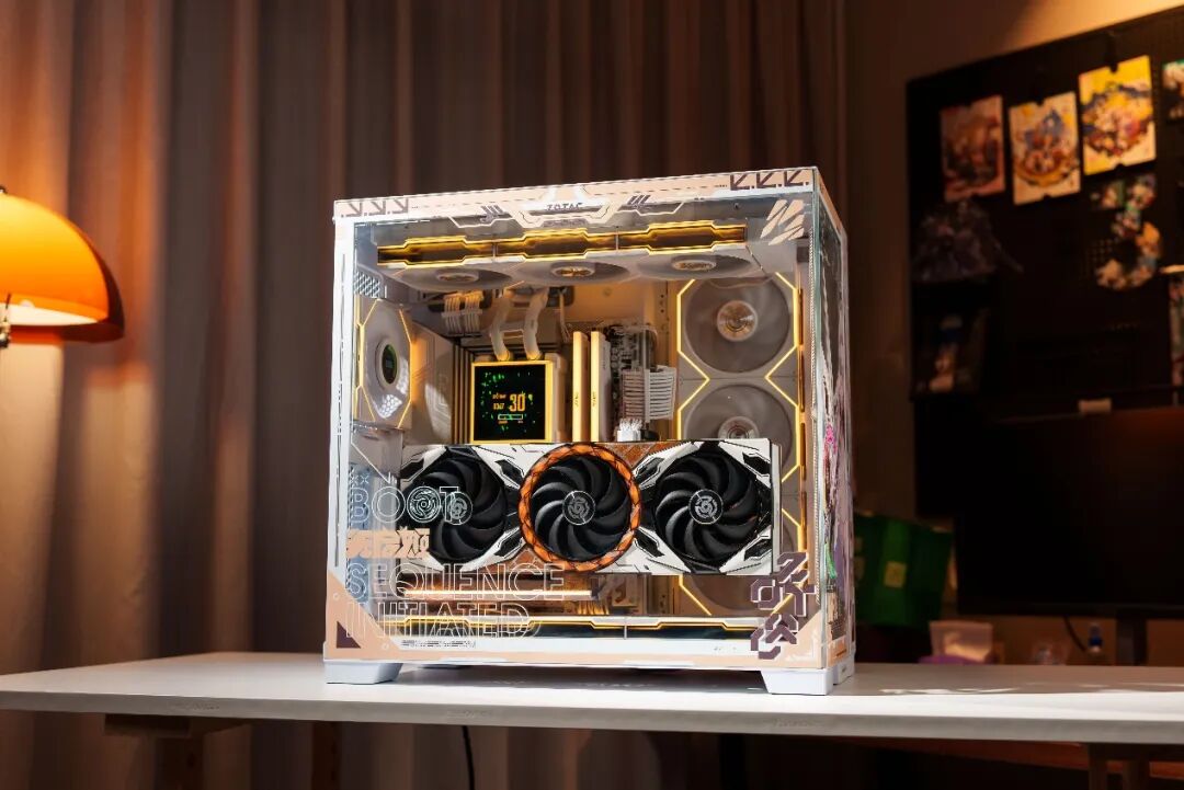 索泰始终致力于探索显卡性能的边界,并通过MOD、联名定制等方式,将冰冷的硬件转化为富有生命力的艺术装置。此次参展,索泰将带来多台定制MOD主机,其中一台是与B站up主“衵曰文Studio”合作打造的作品。