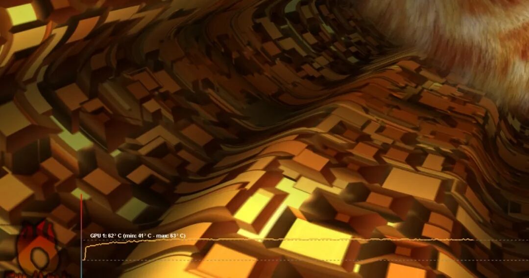 烤机测试中,显卡最高温度63度,平均温度62度,该显卡的散热表现非常出色,考虑到是在开放环境中进行的测试,如果在正常的机箱环境中,温度可能略高于测试数值。