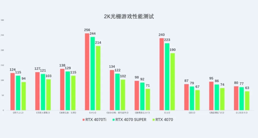 首先是传统的光栅游戏性能测试,分别测试了2K、和4K分辨率下最高画质的实际游戏表现。