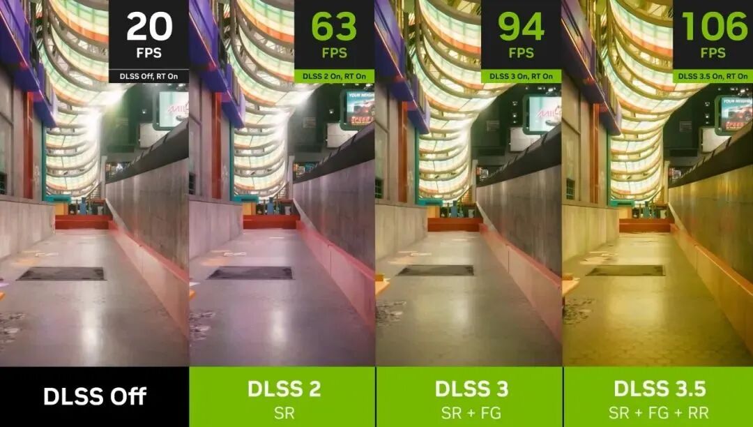 说到游戏玩家最熟悉的AI加速功能,那肯定是RTX实时光线追踪技术以及DLSS。RTX能让游戏画面的光影更趋向真实世界,大幅提高游戏的画面表现;而NVIDIA DLSS则是利用AI提高游戏帧率和改善画质。经过多年的发展,DLSS已推出了好几个大版本,包括DLSS超分辨率、DLSS帧生成和最新的DLSS 3.5 光线重建功能。