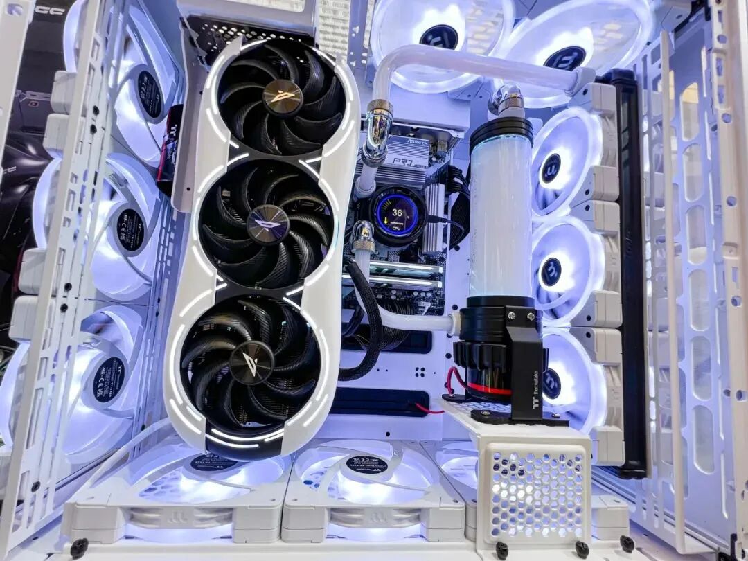 RTX 4090 D PGF作为索泰的超旗舰系列显卡,始终坚持追求极致性能、个性差异和非凡游戏体验。索泰GeForce RTX 4090 D PGF拥有圆柔的曲线廓形,运用黑白色彩的极致碰撞,在精雕工艺和灯光的点睛下,释放出不可忽视的存在感。
