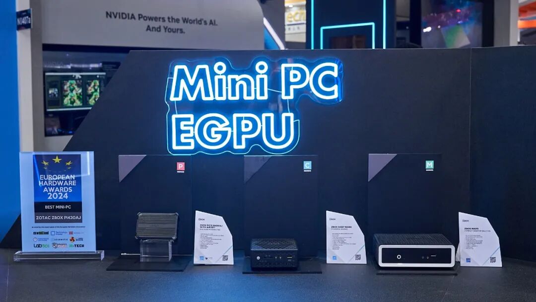 展台还重点展示了索泰ZBOX mini PC在边缘计算、AI加速、游戏及办公领域的最新突破,这些产品配备了最先进的英特尔酷睿 Ultra 处理器,内置AI加速器,具有集成 NPU 的功能,效率、性能和功耗节省有了大幅提升,使这些ZBOX成为长时间持续进行AI工作流负载的完美选择。